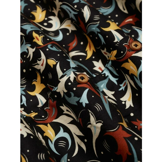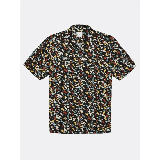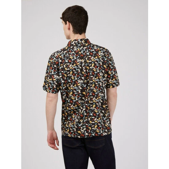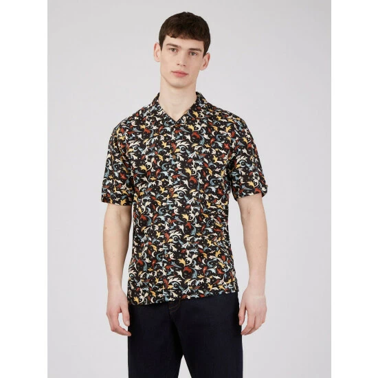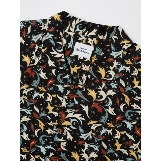 Abstract Floral Print Shirt by Ben Sherman. A short sleeve relaxed fit floral print shirt in a lightweight viscose fabric. Features include a high break revere collar, Ben Sherman tab branding at the side seam and a back box pleat for comfort.
