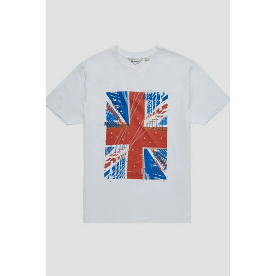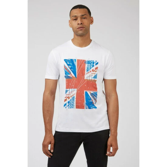 Architectual Jack T-Shirt by Ben Sherman. 100% GOTS certified organic cotton jersey t-shirt in a regular fit. With a nod to our heritage, this tee features an abstract union jack chest print.