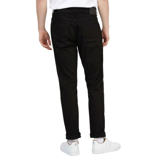 Cotton blend black jeans in a straight fit from Ben Sherman, a part of its signature range. Features include 5 pockets and a branded leather patch on the rear. Style with a t-shirt and a Harrington jacket for a casual look.