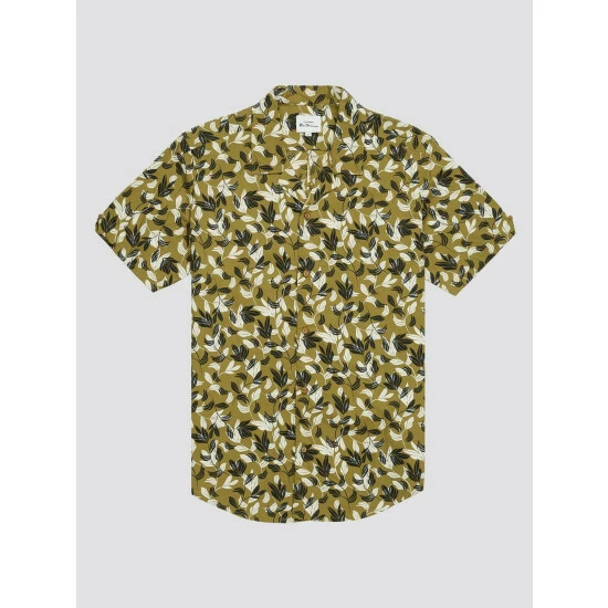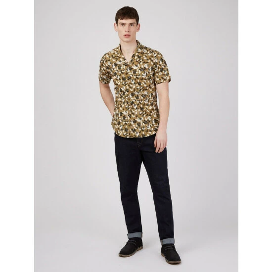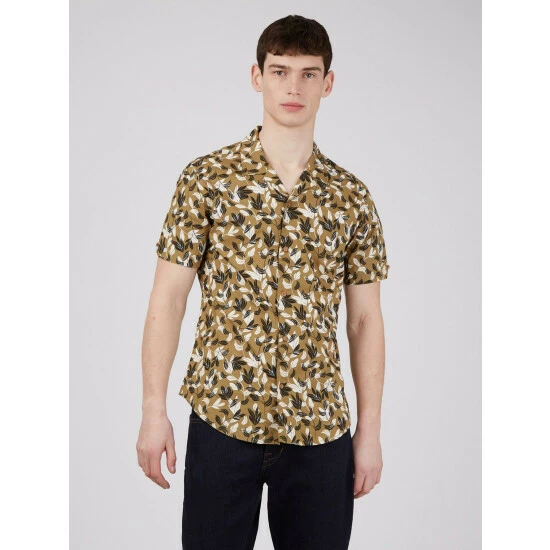 Botanical Print Shirt by Ben Sherman. A short sleeve regular fit botanical print shirt in a lightweight cotton fabric. Features include a revere collar, Ben Sherman tab branding at the side seam and a back box pleat for comfort.