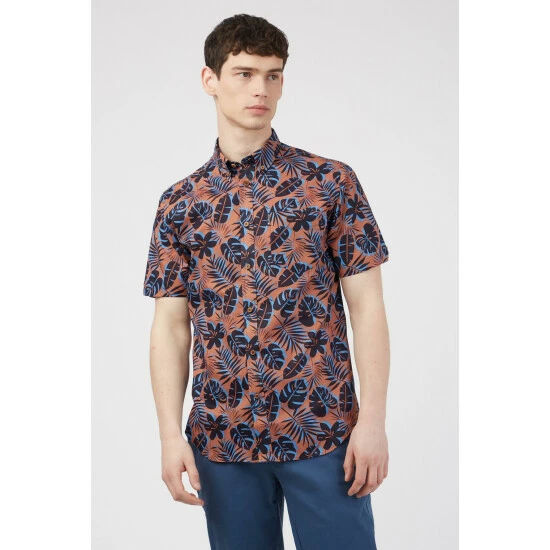 Botannical Silhouette Printed Shirt by Ben Sherman. Ben Sherman presents the very best in contemporary dressing with the latest short-sleeved shirt for men. This statement, botanical silhouette print shirt features a regular fit and our classic, casual revere collar – all in 100% cotton for complete comfort and effortless style. Pair yours with chinos or shorts for an off-duty look. Ben Sherman, the original mod brand – est 1963.