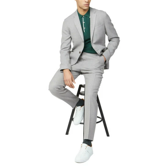 64% Wool 35% Polyester 1% Elastane. Dry clean only. Model wearing a size 40R.