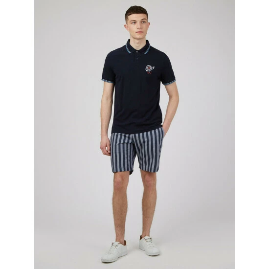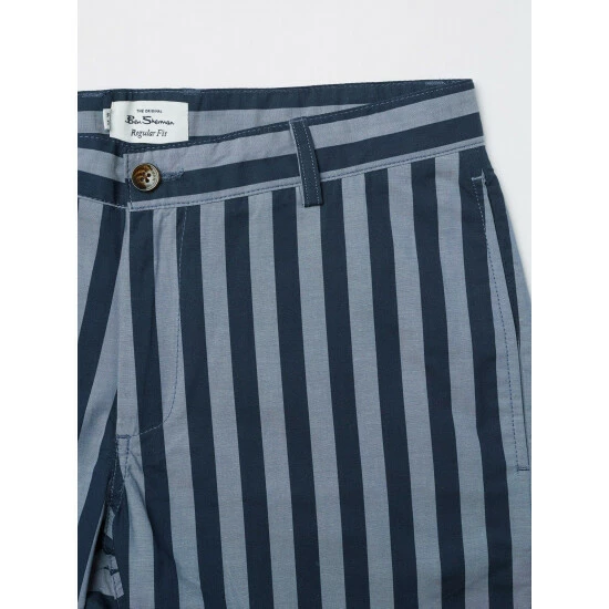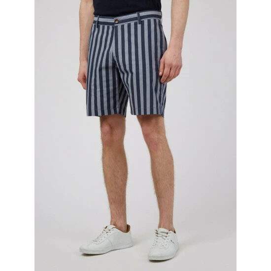 Candy Stripe Short by Ben Sherman. A striped design cotton short in a regular fit from our ‘B’ by Ben range. Features include side seam pockets, button through welt pockets at the back, internal contrast waistband binding and a Ben Sherman branded woven flag label at the centre back.