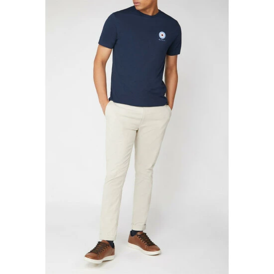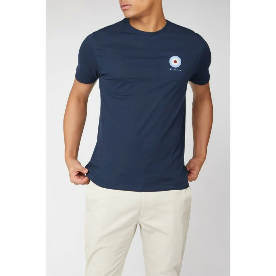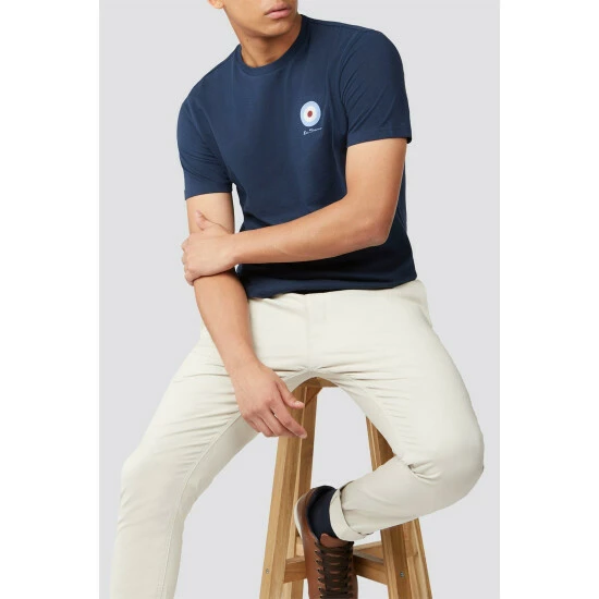 Chest Target T Shirt by Ben Sherman. This cotton crew neck tee by Ben Sherman features a mod target logo in a small, stylish emblem on the chest. In 100% soft touch cotton, this crew neck mens t-shirt is a stylish, casual look for an everyday with a true subculture icon.