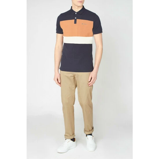 Colour Block Polo by Ben Sherman. 100% GOTS certified organic cotton pique polo in a regular fit. Features contrast colour block panels to the front and branded with a contrast signature “Ben Sherman” chest embroidery.