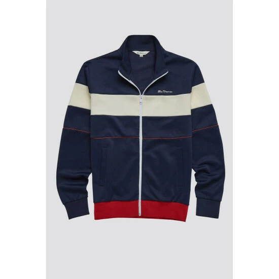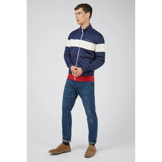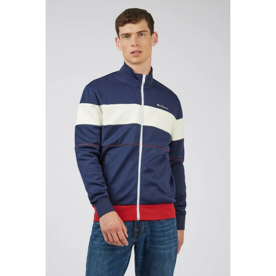 Colour Block Tricot Track Top by Ben Sherman. Sports influenced zip through tricot track top in a regular fit. Designed with contrast horizontal panelling to the front. Finished with a contrast hem and branded with the Ben Sherman signature chest embroidery.