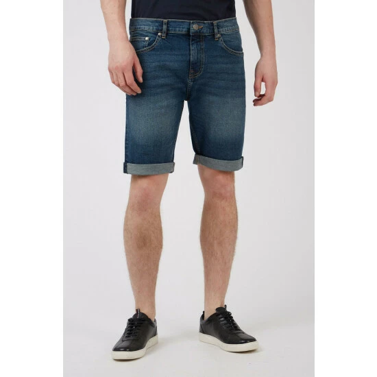 Denim Short by Ben Sherman. Constructed in a stretch cotton blend for comfortable wear, the Ben Sherman denim short is cut to a Slim fit. Featuring Ben Sherman leather patch branding and a button and zip fly.