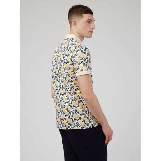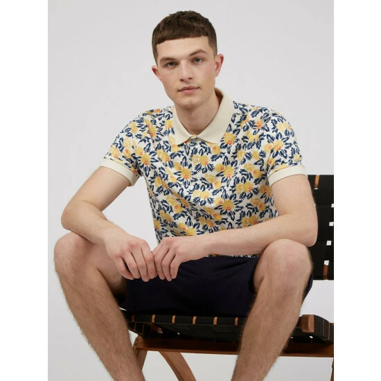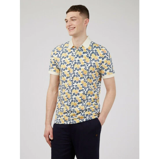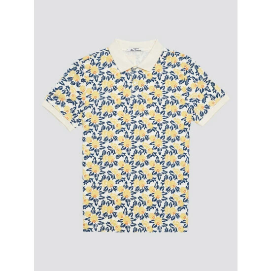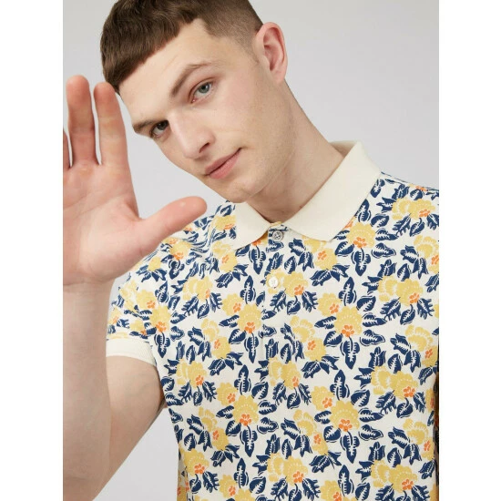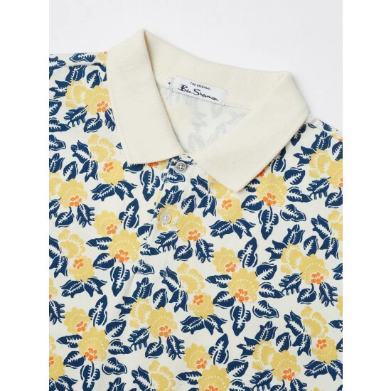 Floral Print Polo by Ben Sherman. Cotton polo with all over floral print. Branded with Ben Sherman side tab label.
