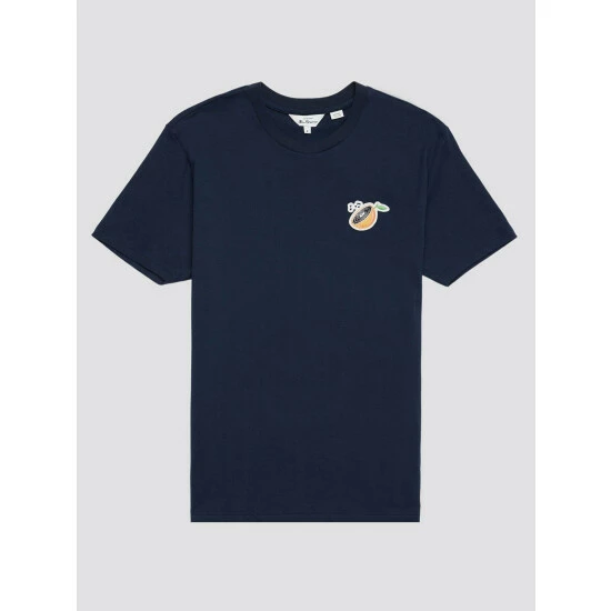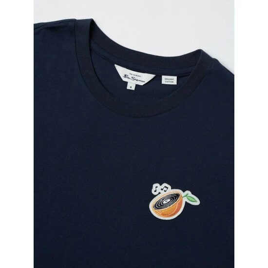 Fruit Logo Embroidered Tee by Ben Sherman. 100% GOTS certified organic cotton jersey graphic t-shirt in a regular fit. With a nod to the music scene, this tee features a fruit with musical notes embroidery at chest.