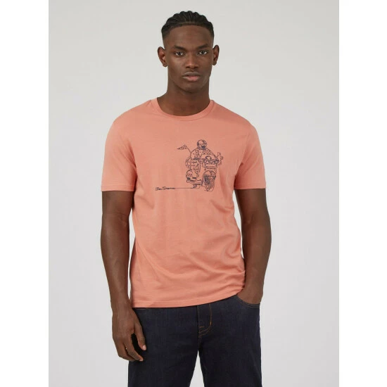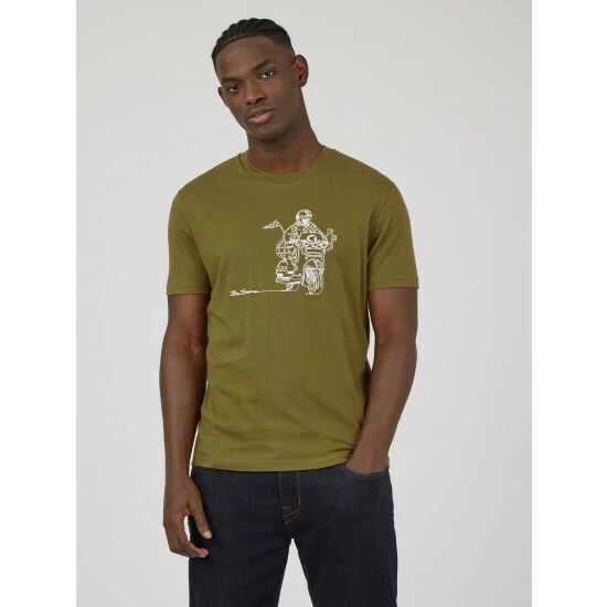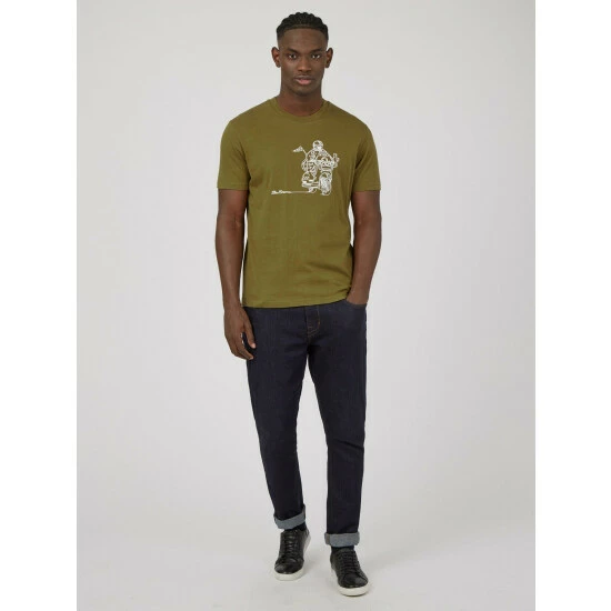 Linear Cruise Print Tee by Ben Sherman. 100% GOTS certified organic cotton jersey graphic t-shirt in a regular fit. With a nod to our heritage, this tee features a scooter with rider chest print.