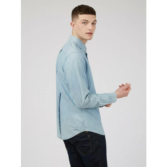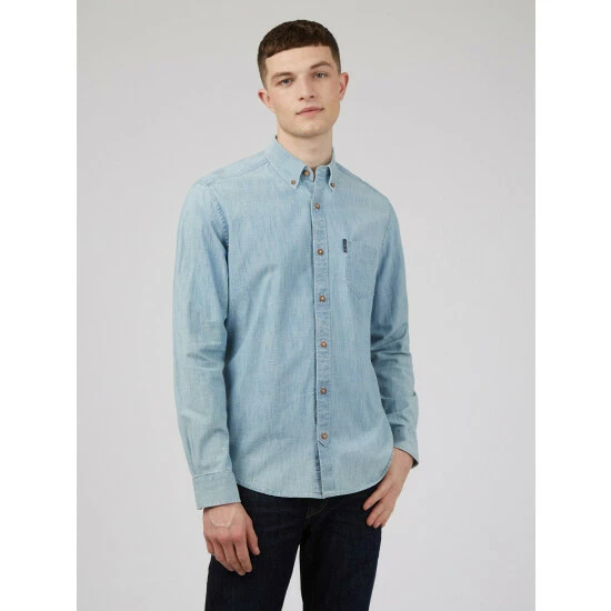 A long sleeve casual shirt by Ben Sherman in a chambray fabric. This shirt is designed in a regular fit and features a chest pocket with Ben Sherman woven side tab branding. Wear all year round with denim jeans for a classic casual look.