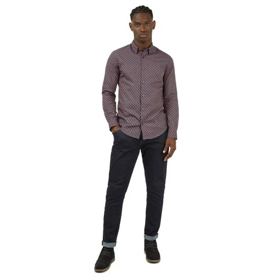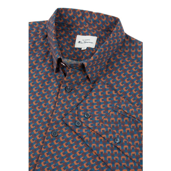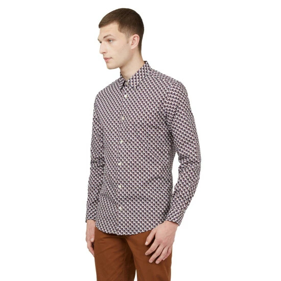 A long sleeve retro casual shirt by Ben Sherman. Designed with a 70s inspired geo print and features a classic concealed button down collar and a slim fit. Wear with denim jeans for a smart casual winter look.