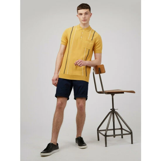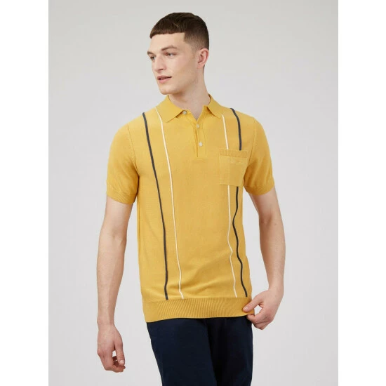 Minimal Mod Stripe Polo by Ben Sherman. A short sleeve knitted polo in a regular fit designed with a minimal vertical stripe down the front. Features a patch pocket to the chest and raised texture for added interest. Branded with a tonal signature “Ben Sherman” chest embroidery.