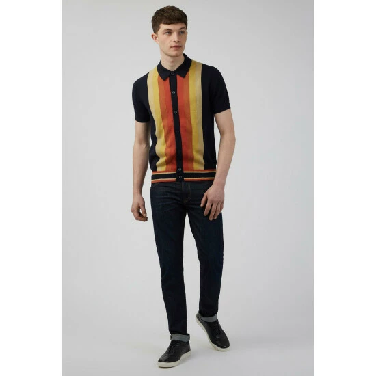 Mod Stripe Polo by Ben Sherman. Take your wardrobe to new heights with the latest menswear from Ben Sherman. Styled in 100% cotton for supreme comfort, this soft knitted polo features a vertical mod stripe to the front in a raised texture, plus a branded Ben Sherman sleeve embroidery. Pair yours with chinos and trainers for an off-duty look. Ben Sherman, the original mod brand – est 1963.