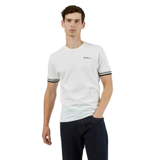 Pique Ringer Tee from Ben Sherman, a part of its signature range. This organic cotton pique tee with contrast stripe at the cuff, features two colour Ben Sherman Signatur embroidery. Style with Ben Sherman jeans for a casual look.