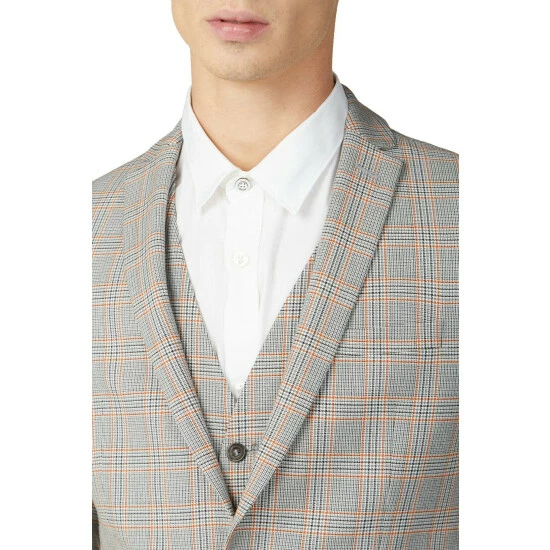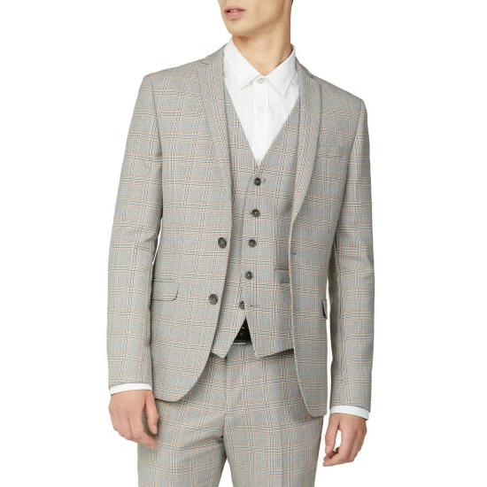 73% Polyester 22% Viscose 5% ElastaneSuit includes jacket and trousers with a 6 inch difference e.g. 40R jacket 34R trousers. Choose your jacket size above. Dry Clean Only. Model wears a size 40R and 34R.