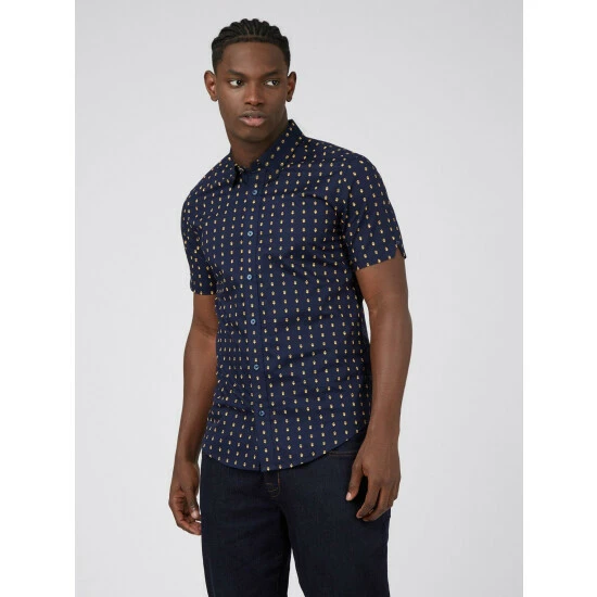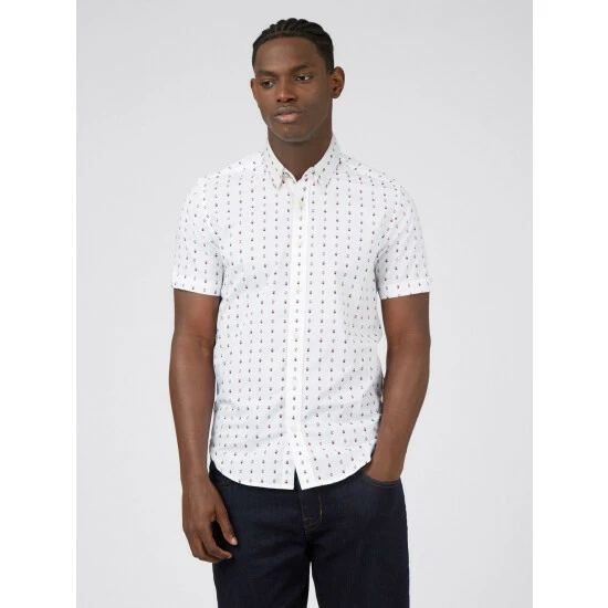 Print Shirt by Ben Sherman. A short sleeve shirt designed in a check that comes in a regular fit and features a classic point collar. Branded with the Ben Sherman woven side tab. Made from 100% cotton.