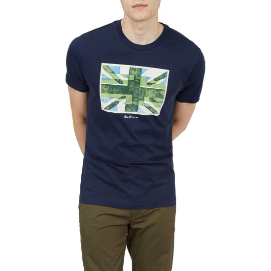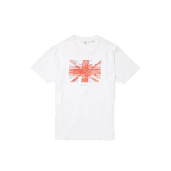Printed Union Jack Tee from Ben Sherman, a part of its signature range. This graphic t-shirt with a nod to Ben Shermans heritage features a photographic abstract union jack chest print is made from 100% GOTS certified organic cotton. Style with Ben Sherman jeans for a casual look.