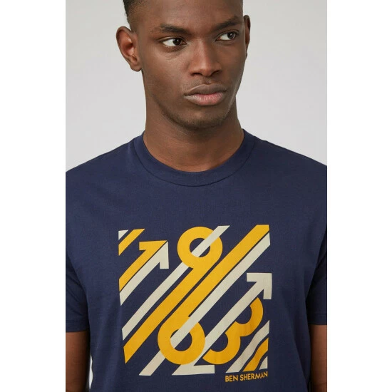 Retro Sport Print Tee by Ben Sherman. 100% GOTS certified organic cotton jersey graphic t-shirt in a regualr fit. Features a retro sprots water based print to the chest.