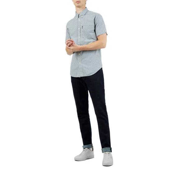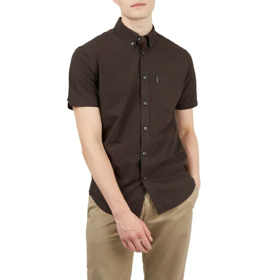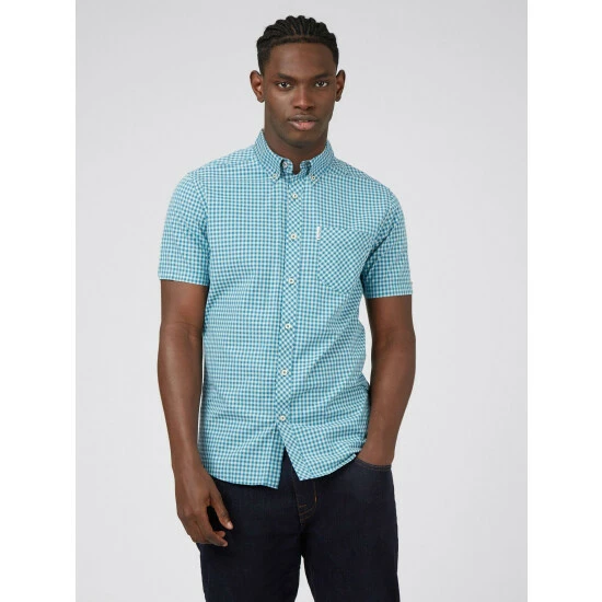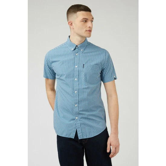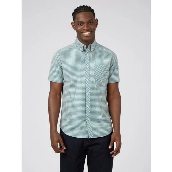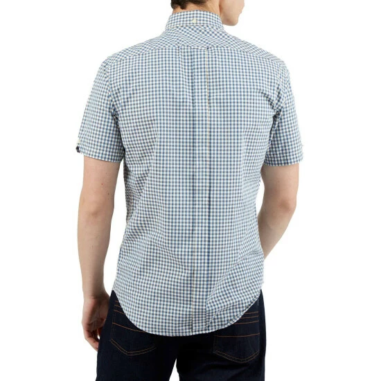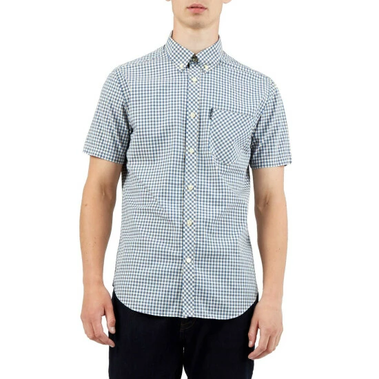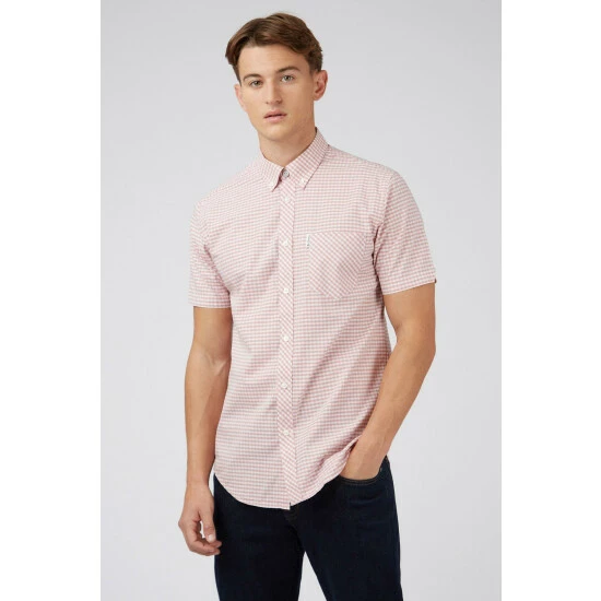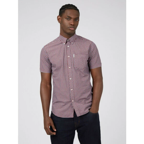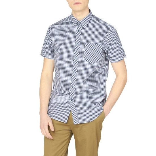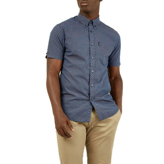 A short sleeve gingham checked shirt by Ben Sherman, as part of their signature range. This shirt features a button down collar and is branded with the Ben Sherman woven side tab. Wear with denim jeans for a smart casual look.