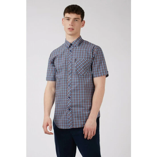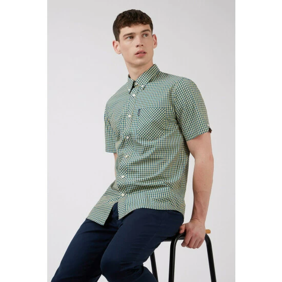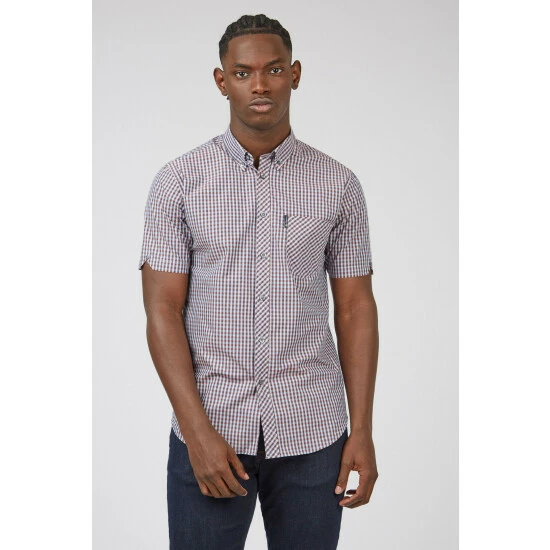 Short Sleeve Gingham Shirt by Ben Sherman. Our iconic gingham shirt is a wardrobe essential cut to our union fit in 100% cotton. This stylish staple features a tab branded front chest pocket, a button-down collar and a back box pleat.