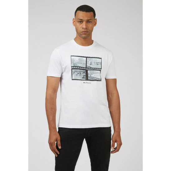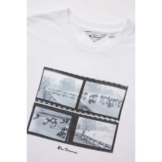 Start Line Tee by Ben Sherman. 100% GOTS certifield organic cotton jersey graphic t-shirt in a regular fit. With a nod to our heritage, this tee features a photographic print to the chest.