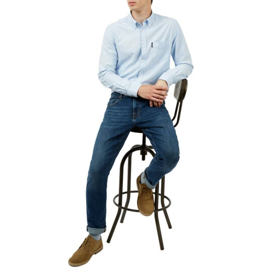 Cotton blend jeans in a stonewash and straight fit from Ben Sherman, a part of its signature range. Features include 5 pockets and a branded leather patch on the rear. Style with a t-shirt and a Harrington jacket for a casual look.