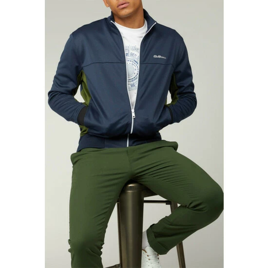 Tricot Zip Through by Ben Sherman. Sports influenced zip through tricot track top in a regular fit. Designed with contrast side panels and colour blocking at the cuffs. Features a ribbed hem and branded with a signature “Ben Sherman” silicone chest badge.