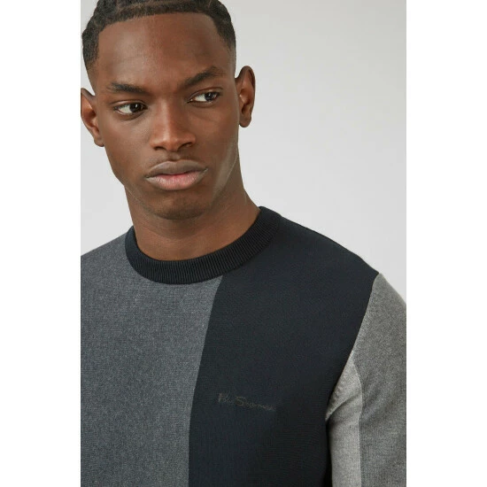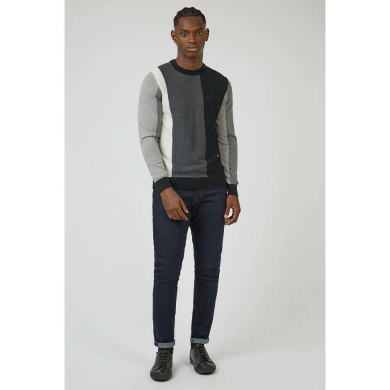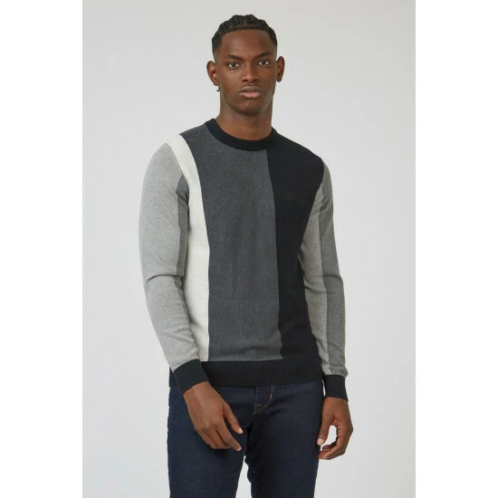 Vertical Stripe Crew by Ben Sherman. A cotton crew neck jumper designed with an all over vertical stripe and a regular fit. Designed in tonal colours, making this jumper perfect to wear with tailored trousers for a smart casual look. Branded with our Ben Sherman side tab label.
